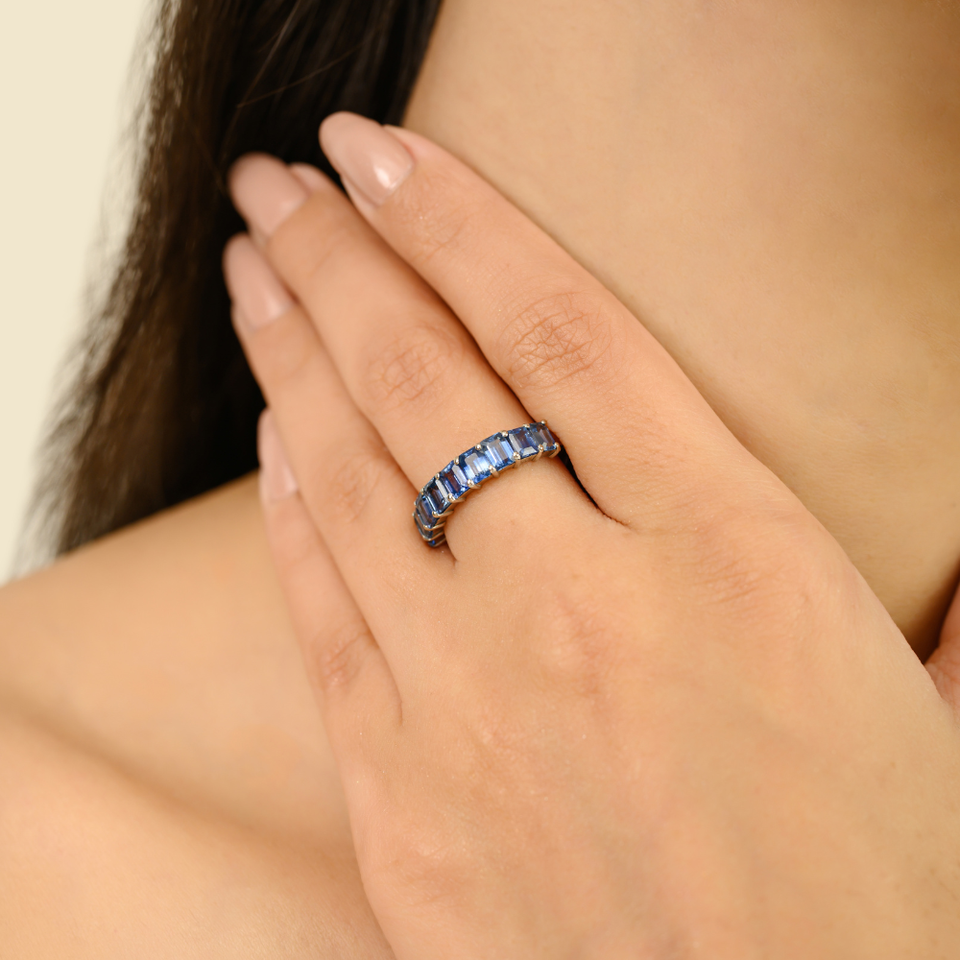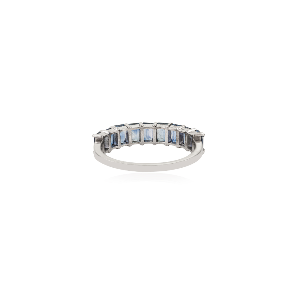 High Quality September Birthstone 14K Pure White Gold Blue Sapphire Half Eternity Band Ring Unisex Top Selling Jewelry Supplier