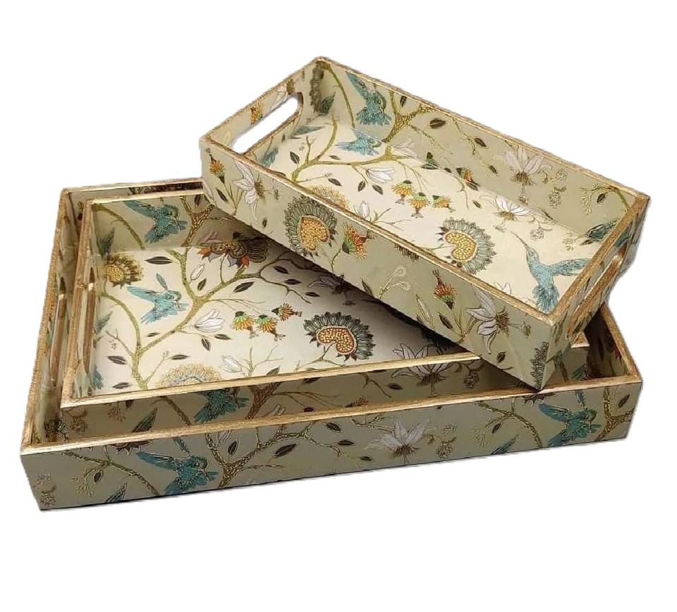 LUXURY HOME DECOR Set of Three MDF Wood Wedding Trays Enamel Coated for Multipurpose Use Custom Print Design