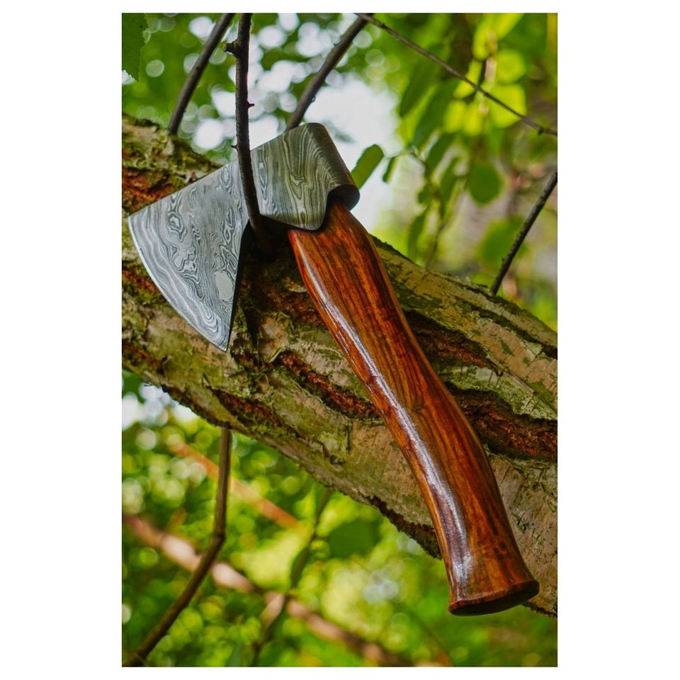 High Quality Sharp Curve Blade Outdoor Wood Cutting Damascus Axe | Damascus Steel Homemade Hunters Survival Axe Custom Logo