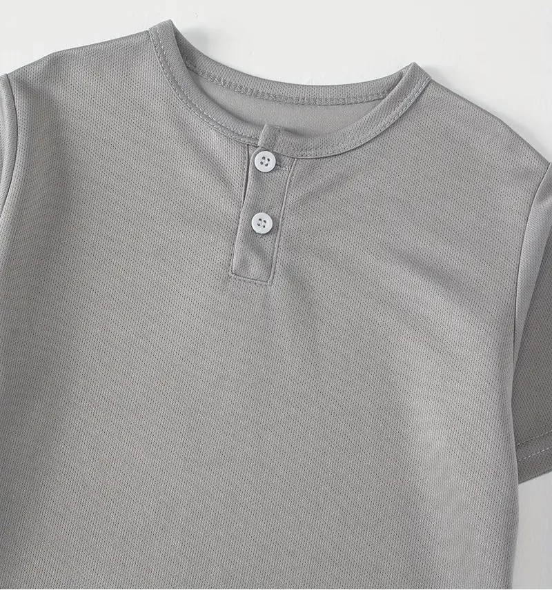 3pcs Unisex Short Sleeve Henley T-Shirts Black Gray Blue Lightweight Breathable Casual Summer Tops Youngsters 4-12 Years BD 100%