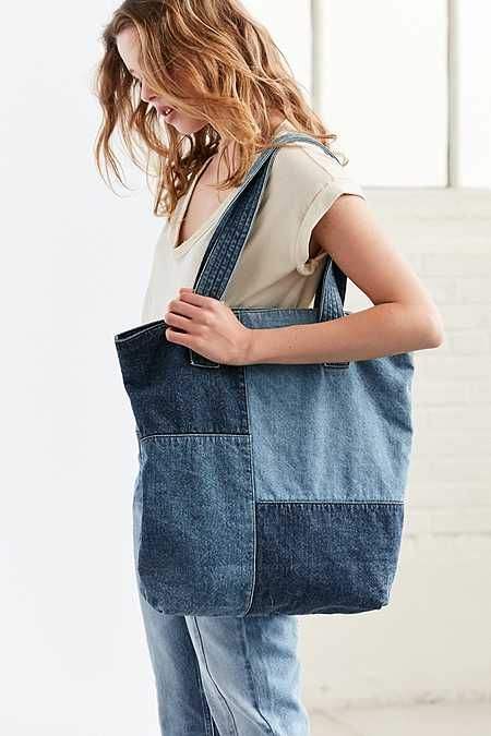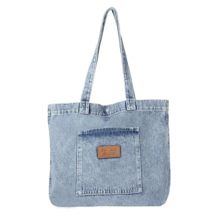 High Quality Shoulder Tote Bag With Distressed Denim Lettering Large Cotton Fabric Tote Bag For Women Casual Daily Shopping Use
