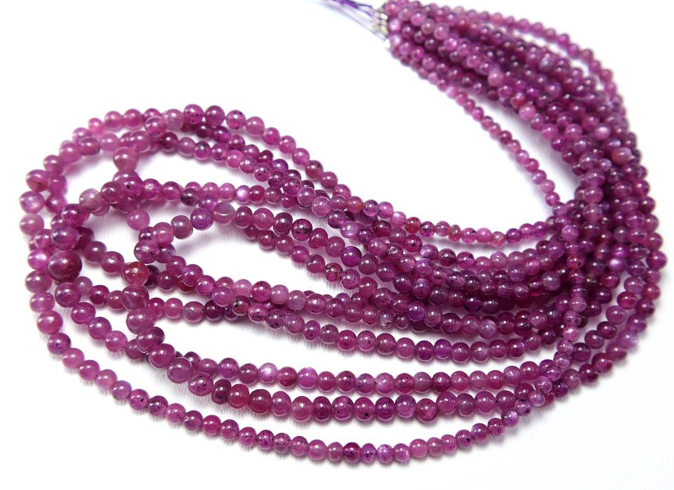 High Quality Silky Pink Sapphire Beads Smooth Shape Natural Gemstones 4mm 6mm 16'Inch in Pink Color