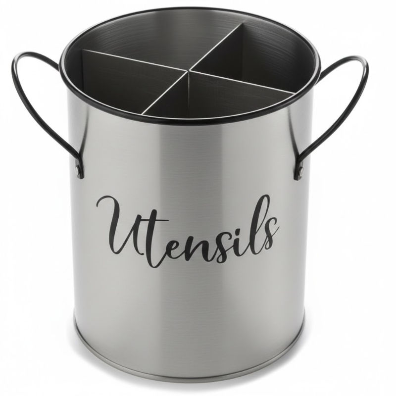 High Quality Silver Finished Metal Steel Cutlery Holder Utensil Caddy With Handle For Kitchen Storage And Organization On Sale