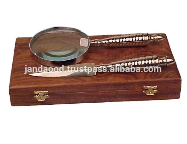 High Quality Silver Plated Magnifier With Paper Knife in Wooden Box Study Desktop Accessories Book Newspaper Reader