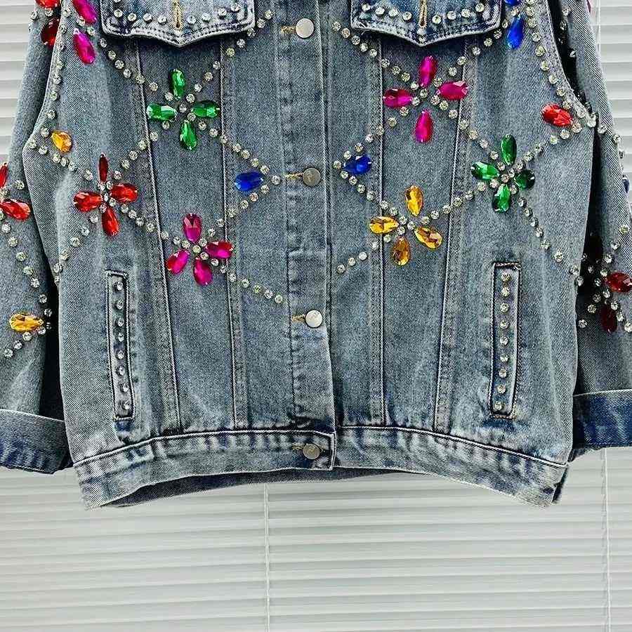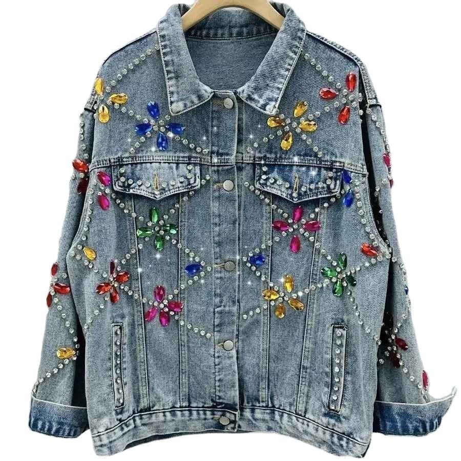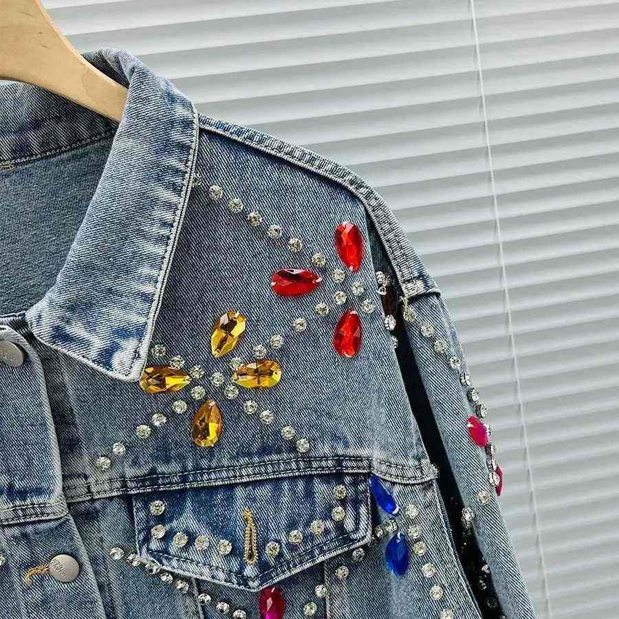 High Quality Silver Rhinestone Borders And Decorative Buttons High Fashion Trendy Whole Sale Customise Women Denim Tops
