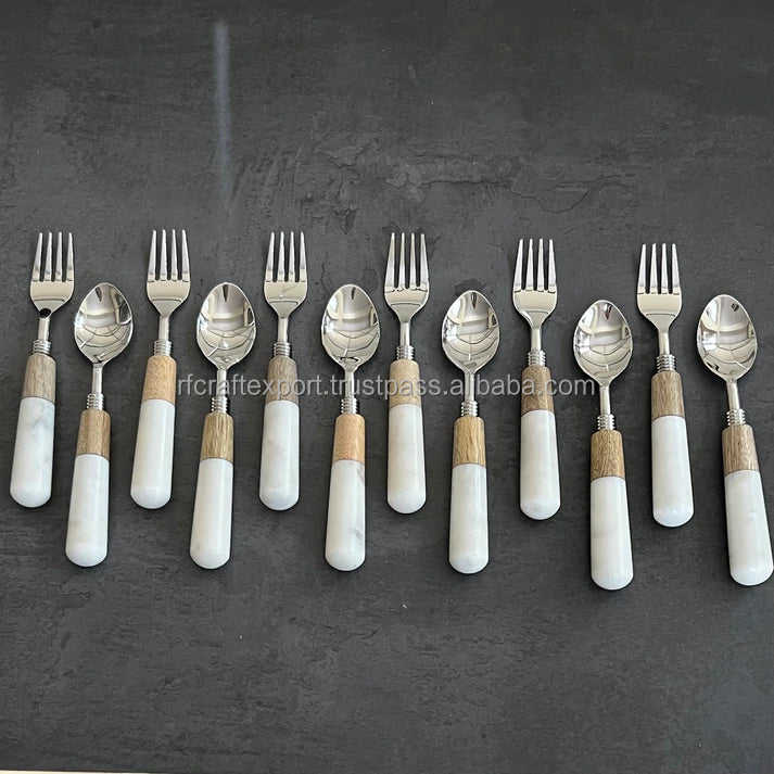 High Quality Silverware Cutlery Spoon Fork Set Handmade White Resin Handles Kitchenware Metal Flatware Resin Handles RF Crafts