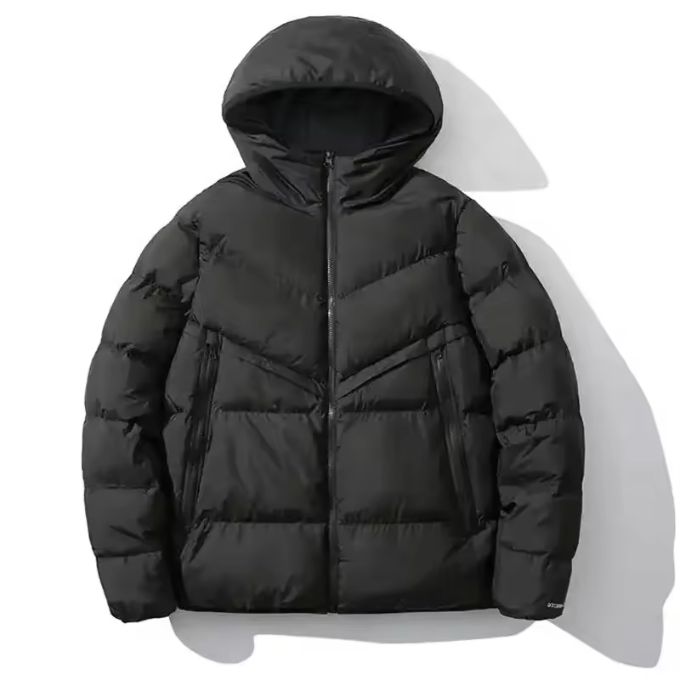 High Quality Single Button Closure Custom Brand Winter Warm Quilted 100% Polyester Puffer Men's Stand Front Puffy Jacket DDP