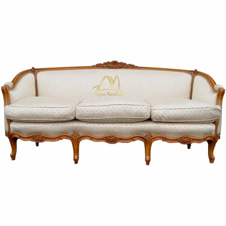 High Quality Sofa 3 Seater Classic Style Hand Carved Sofa Gold Color Tufted Cushion for Living Room Furniture