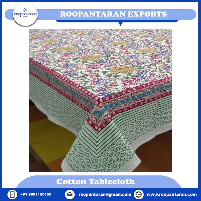High Quality Soft Cotton Long Tablecloth Surajmukhi Open Indian Hand Block Printed Handmade Technique Wholesale Price Sale