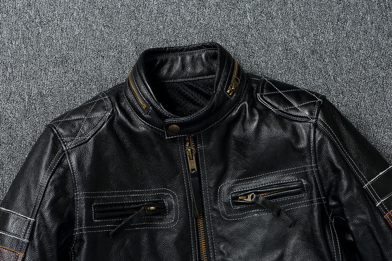 High Quality Soft Cowhide Leather Zip Jacket for Men Custom Retro-Style 'Stone Worn' Slim Fit Heavyweight Motorcycle Jacket