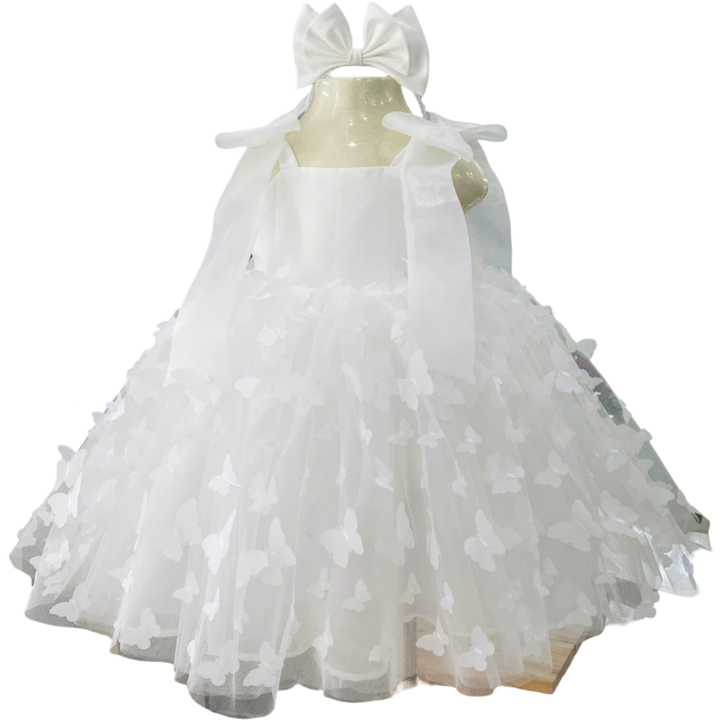 High Quality Soft Mesh Cotton 3D Butterfly Decorated Maxi Dress Girls' Casual Short Party Dress Halter Sleeveless Children