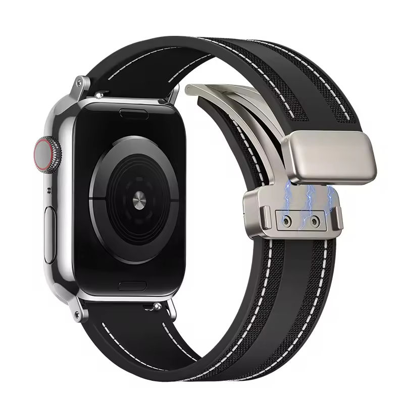 High Quality Soft silicone+ Genuine Leather Smart Watch Band for apple Watch Magnetic Folding Buckle Fashion leather Straps
