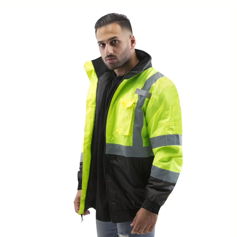 High Quality Softshell Reflective Safety Zipper Hoody Men's Waterproof Canvas Winter Jacket Reflective Outdoor Safety Overall