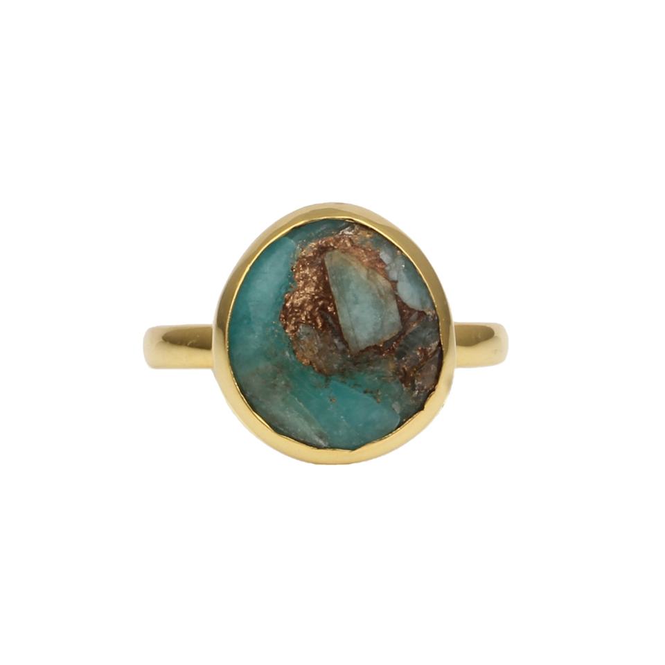 Product Name:Natural Amazonite Copper Sterling Silver Gold Plated Ring