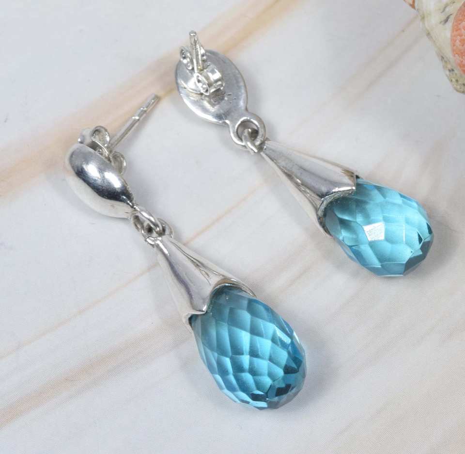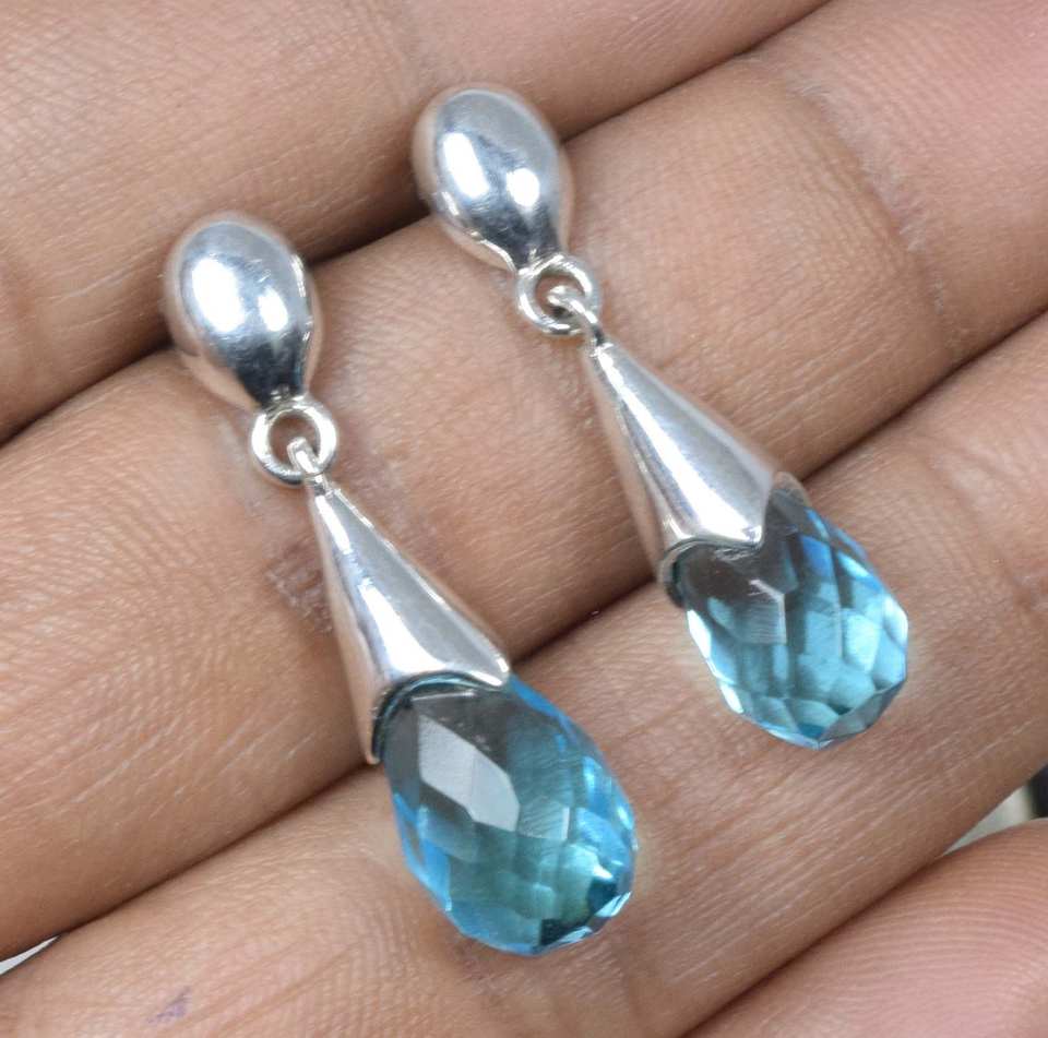 High Quality Solid 925 Sterling Silver Classic Modern Natural Blue Quartz Faceted Gemstone Drop Earrings for Party Weddings