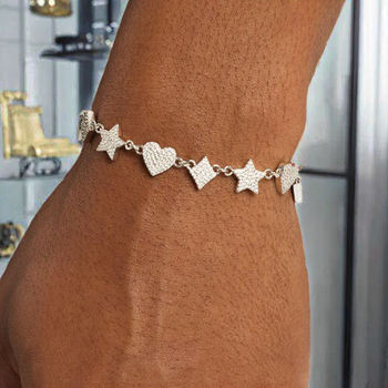 High Quality Solid 925 Sterling Silver Yellow Gold Plated Star Heart Design Charm Moissanite Hiphop Style Bracelet Children's