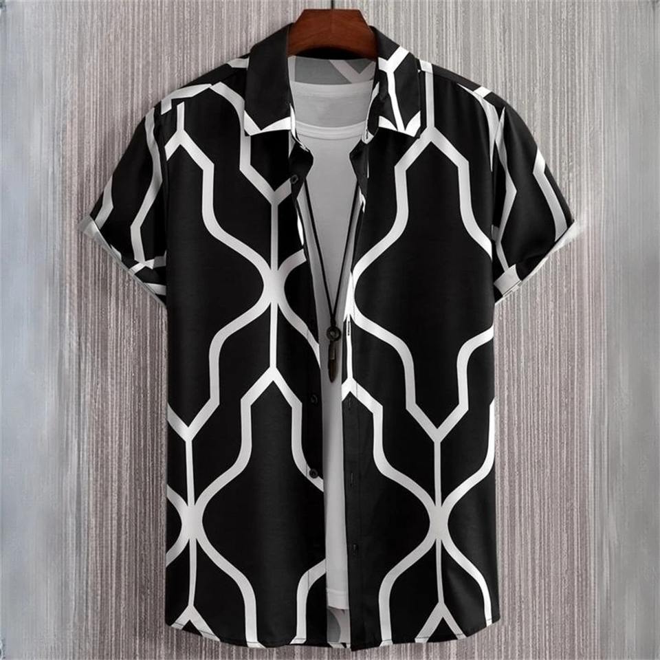 High Quality Solid Button-down Knitted 100% Cotton Men's Short Sleeve Beach Party Shirts