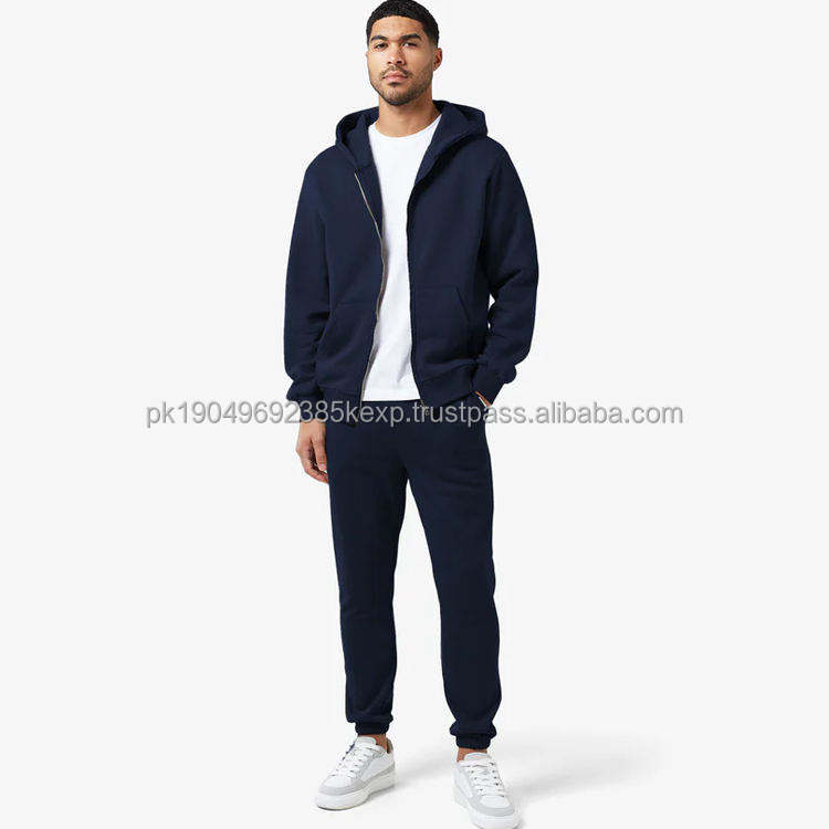 High Quality Solid Color Active Wear Two Piece Sets Full Zip up Hoodie Jogging Suit Custom Mens Training Tracksuits