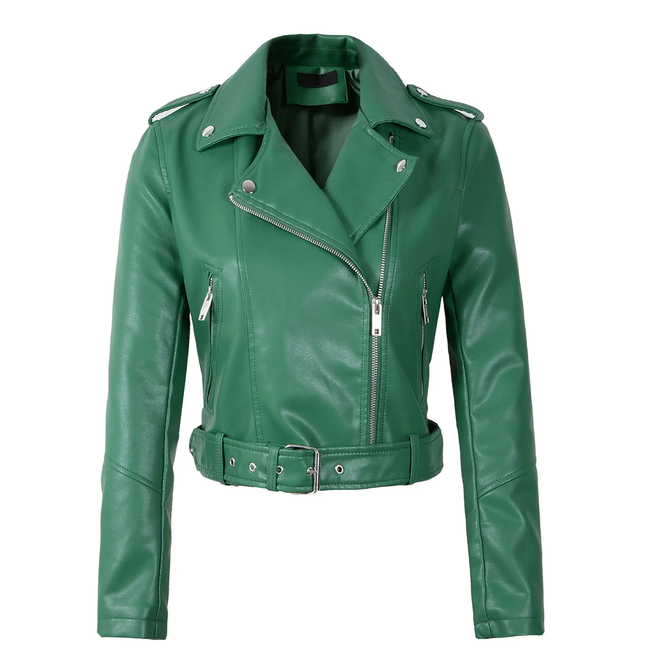 High Quality Solid Green Color Women Leather Jacket Breathable Custom Outdoor Leather Jacket With Best Material