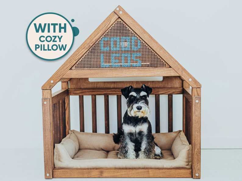 High Quality Solid Pine Wood DIY Dog House with Animal Pattern Elegant Pet Furniture Featuring Cat Bed & Dog Bed