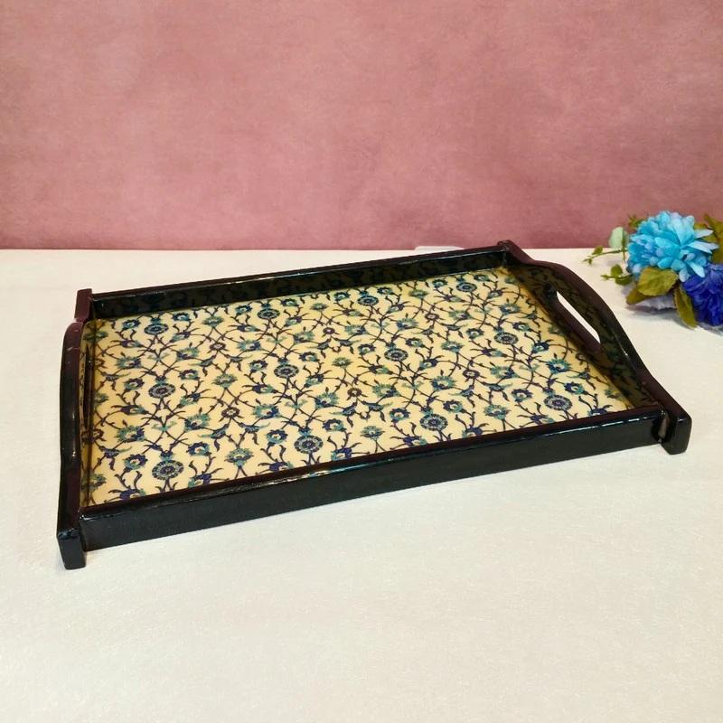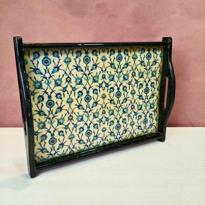 High Quality Solid Wood Serving Tray Handmade and Eco-Friendly Elegant Printed Design for Breakfast Dinner or Table Decor