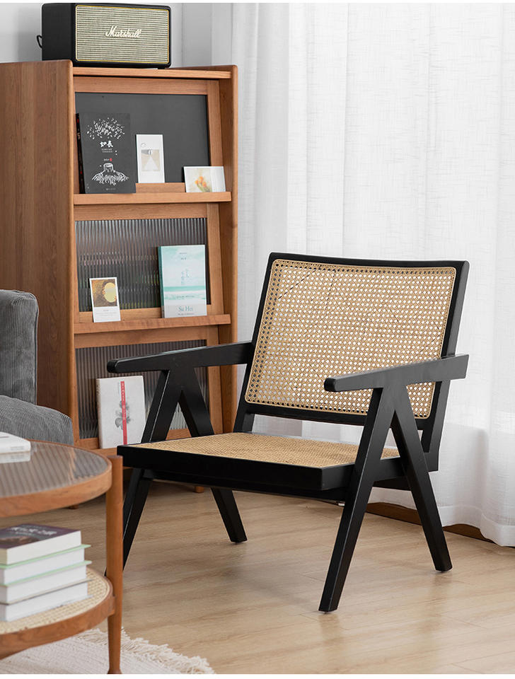 High Quality Solid Wooden Arm Design Wicker Cane Lounge Chair Modern Style Dining Chair for Hotel Coffee or Living Room Use