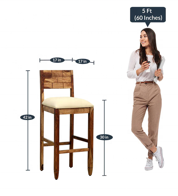 High Quality Solid Wooden Bar Chair High Foot with Genuine Leather Seat Design for Kitchen Counter, Restaurant, Club Bar Chair