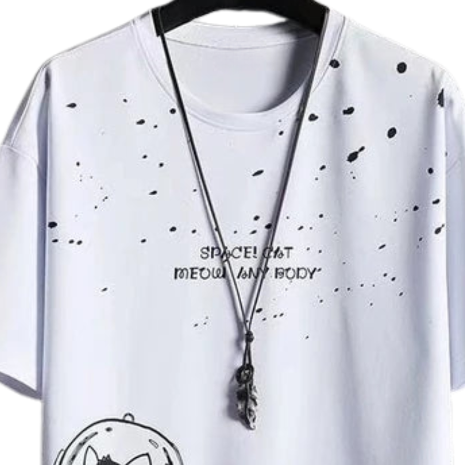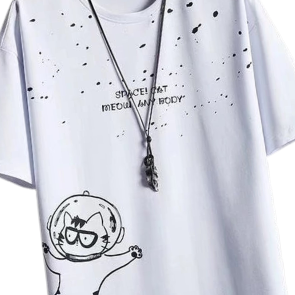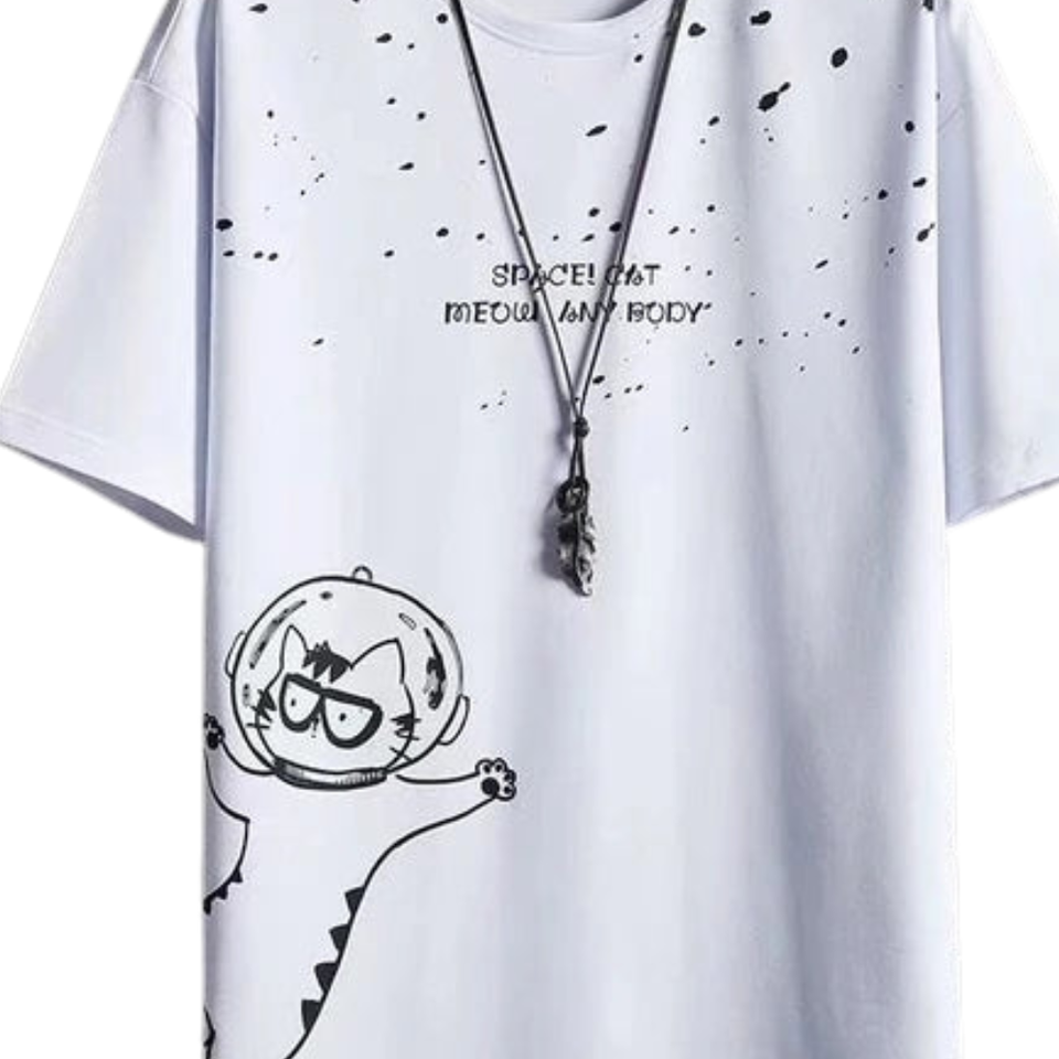 High Quality Space Cat Print T Shirt Cartoon Graphic Tee Casual Unisex Cotton Streetwear Short Sleeve OEM Custom Logo Wholesale