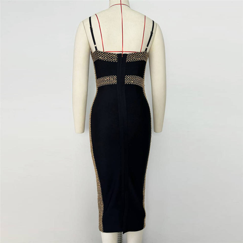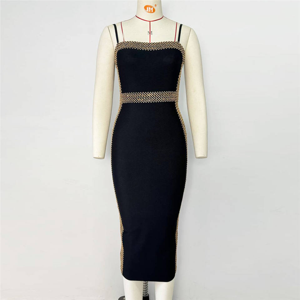 High Quality Spaghetti Strap Elegant Cocktail Dresses Mesh Trumpet Evening Party Black Bandage Dress for Woman