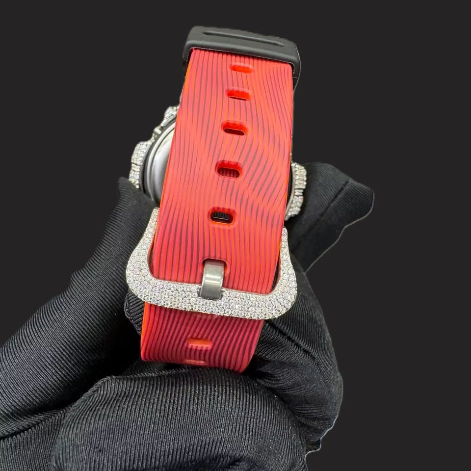 High Quality Sport Hip Hop Mens Iced Stainless Steel Case Sapphire Crystal Digital Movement Miyota Rubber Band Fine Jewelry