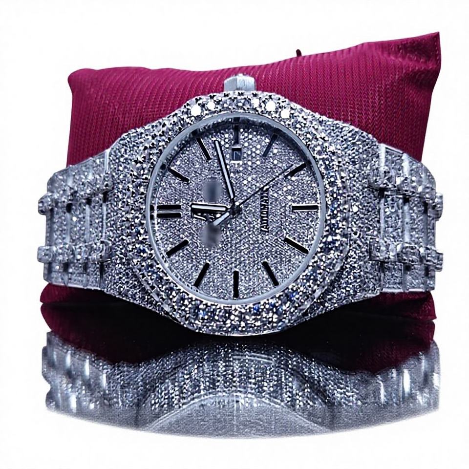 High Quality Square Analog Glass Dial Vvs Moissanite Diamond Hip Hop Men's Mechanical Watch Hot Selling Iced Customizable Watch