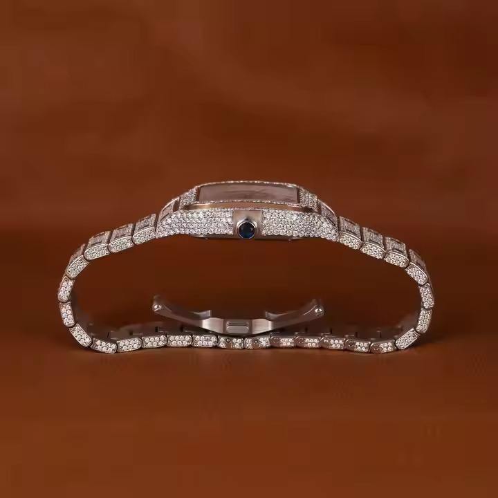High Quality Stainless Steel & Alloy Business 5mm Iced Moissanite Diamond Mechanical Quartz Watch for Men with Fashionable Look