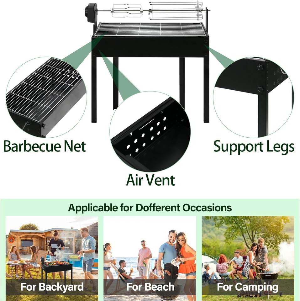 100x14x75 cm Outdoor Charcoal Barbecue Skewers with Steel Oven and Folding Legs High Heat Durable BBQ Grills