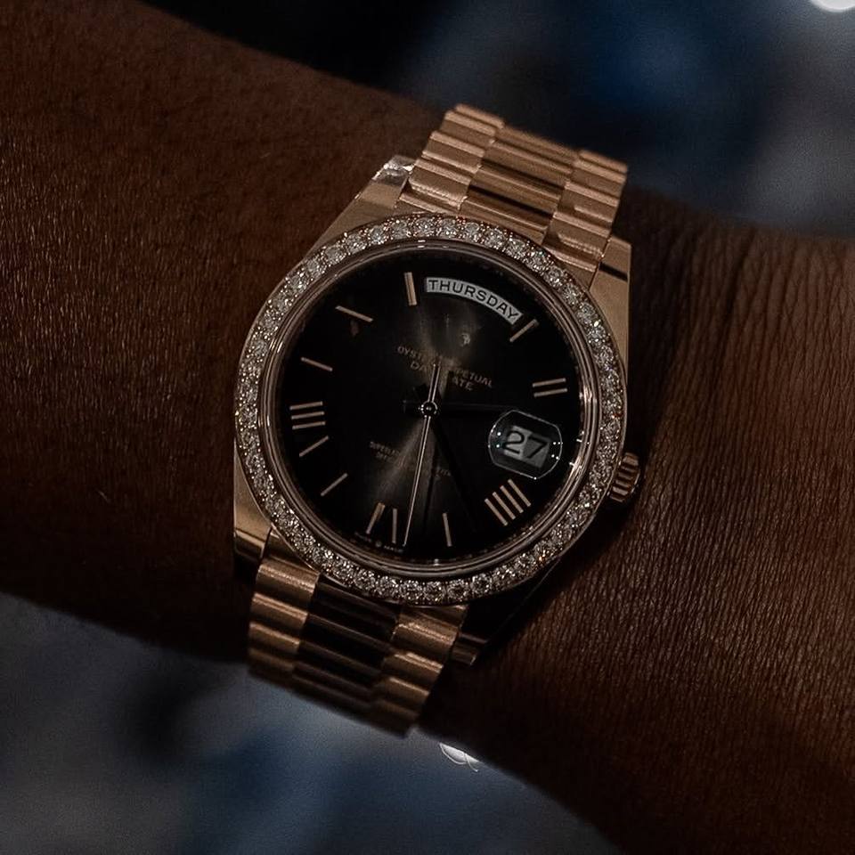 High Quality Stainless Steel Band Luxury Limited Edition Hip Hop Watch for Men's Antiqued Iced Black Dial Full Diamonds