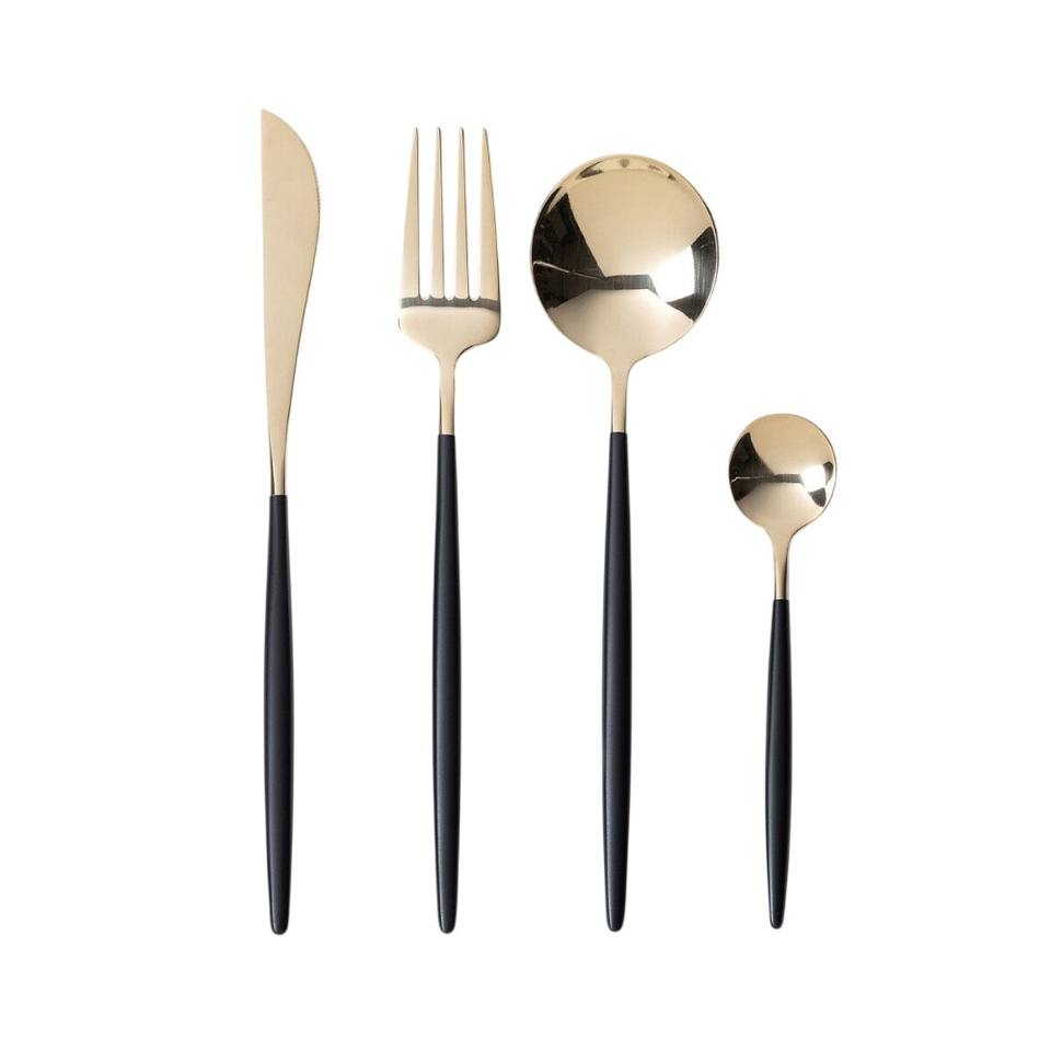 High Quality Stainless Steel Black And Gold Cutlery Set Modern Black Gold Plated Flatware High Dining Set For Home Hotel Use