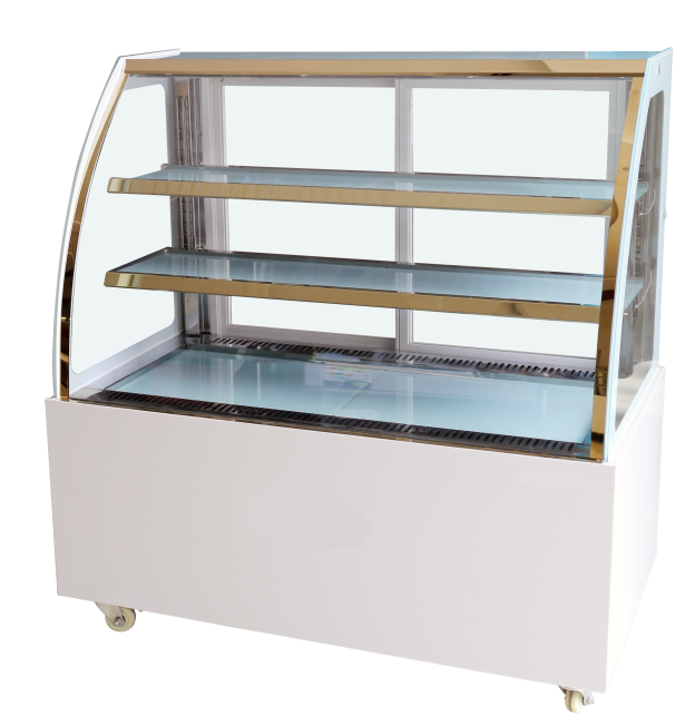 High Quality Stainless Steel/Glass Floor Standing Air Cooled Curved Refrigerated Cake Display Cabinet for Bakery Equipment
