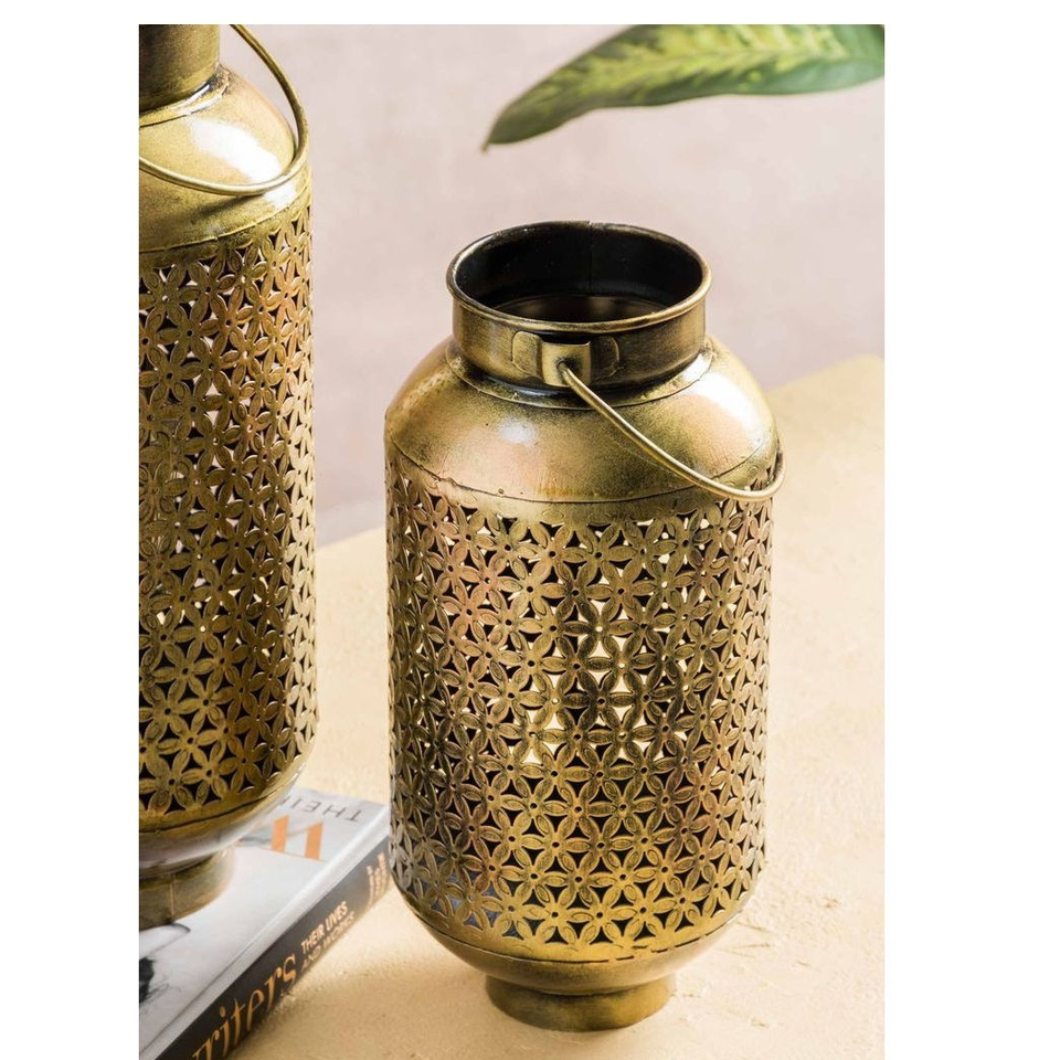 High Quality Stainless Steel Gold Floor Lantern with Etched Flower Design Home Decor Banquet Halls Featuring Iron Candle Holders
