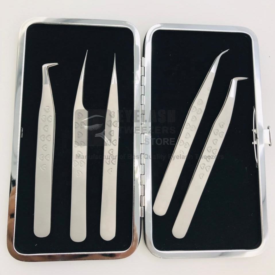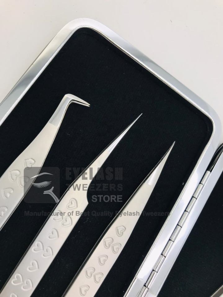 High Quality Stainless Steel Lash Tweezer Heart-Shaped Engraved Handle Hand-Tested Eyelash Extension Tweezers Low MOQ