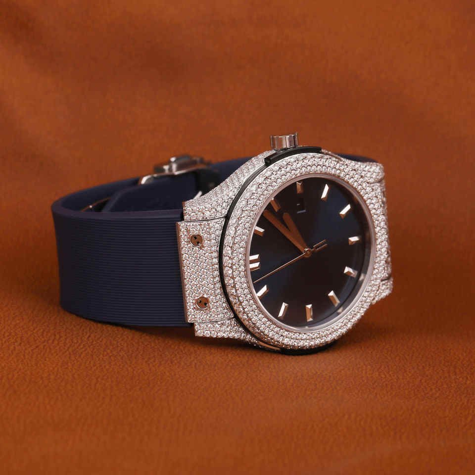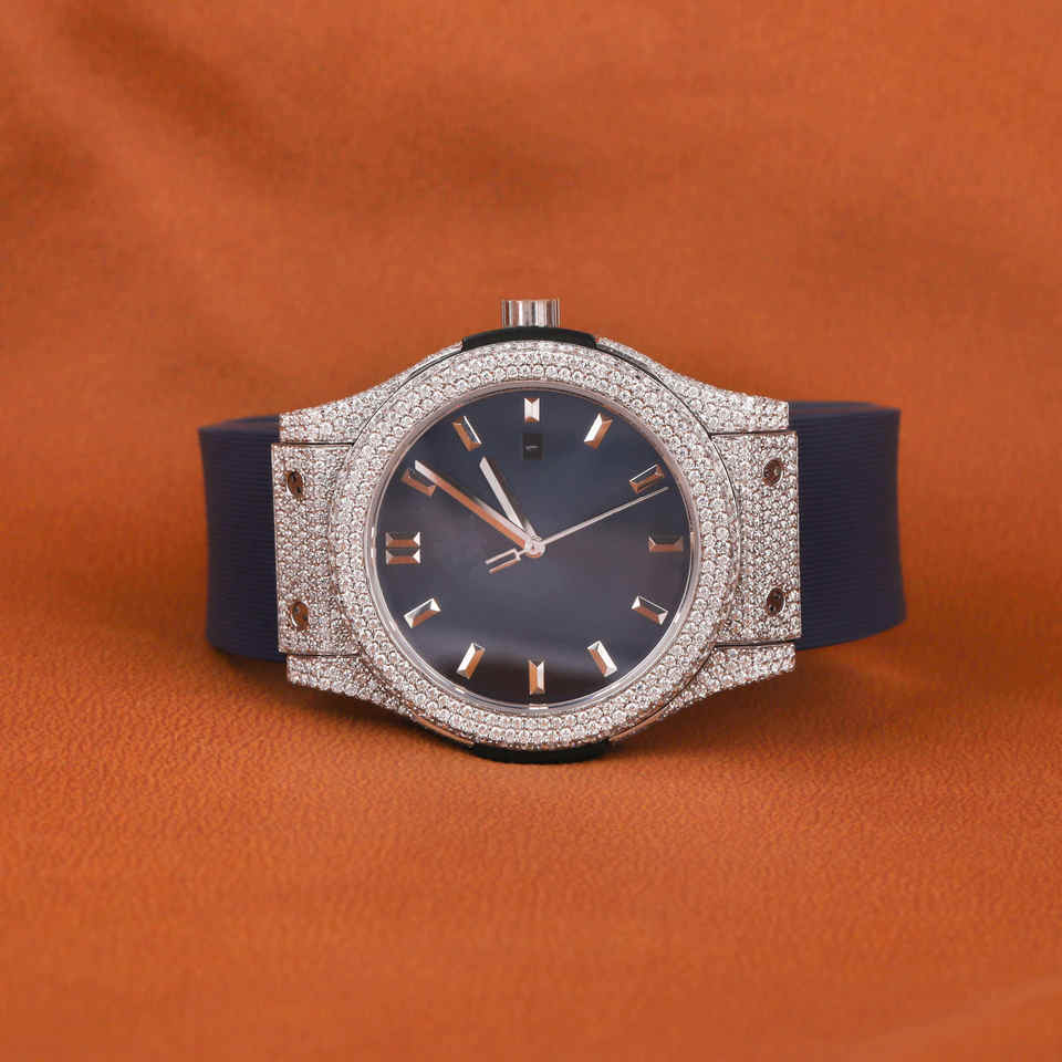 High Quality Stainless Steel Luxury Hip Hop Full Iced Diamond Mechanical Watch Unisex Leather Strap Vvs Moissanite