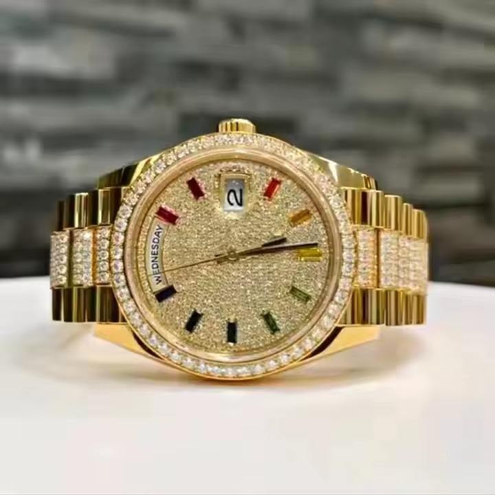 High Quality Stainless Steel Luxury Hip Hop Full Iced Diamond Mechanical Watch Unisex Leather Strap ETA Movement
