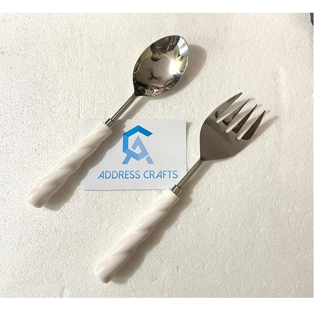 High Quality Stainless Steel Salad Server Set Resin Handle Kitchenware Resin Cutlery Salad Spoon Fork Set Tableware Salad Tools