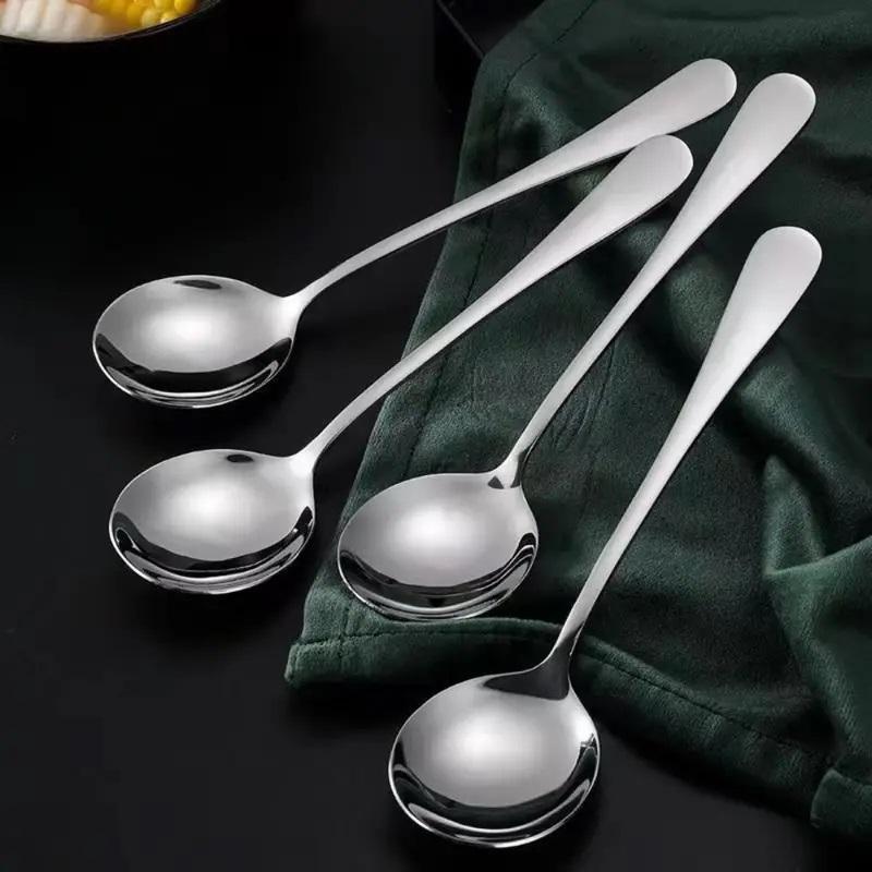 High Quality Stainless Steel Spoons Set Reusable Tableware Spoons for Soup Dessert Ice Cream and Tea Coffee Use