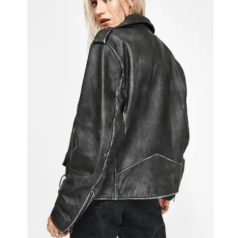 High Quality Stand Collar Genuine Cow Leather Dyed Breathable Women Customized Motorcycle Jacket
