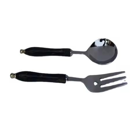 High Quality Steel Salad Server Set With Metal Wire Woven Handle Flatware Steel Salad Spoons and Salad Fork