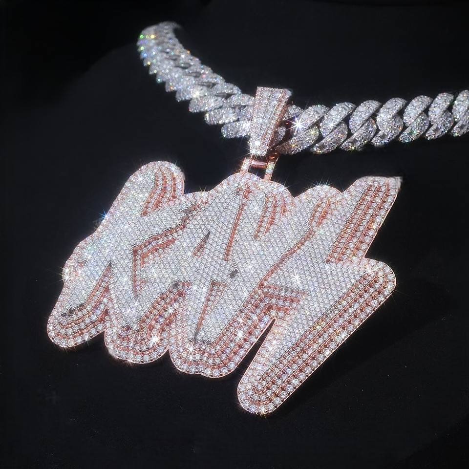 High Quality Steyles Mossanite Letter Pendant Silver 925 Moissanite Iced Out Custom Name Necklace for Men Hip Hop Jewelry Gift