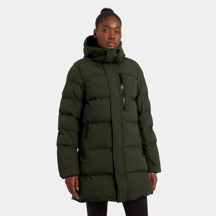 High Quality Street Fashion Women's Winter Puffer Jacket Long Hooded with Stand Collar Quilted and Breathable Woven Method
