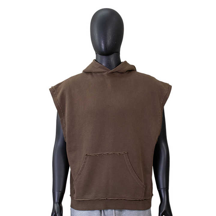 High Quality Streetwear Clothing Tank Top 350g 100% Cotton Sleeveless Hoodies Acid Washed Tank Top for Men DDP Shipping