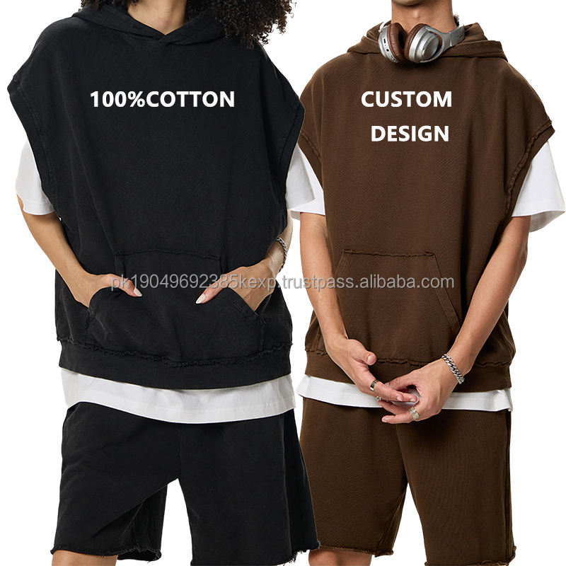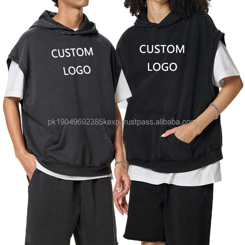 High Quality Streetwear Clothing Tank Top 350g 100% Cotton Oversized Sleeveless Hoodies Acid Washed Tank Top for Men