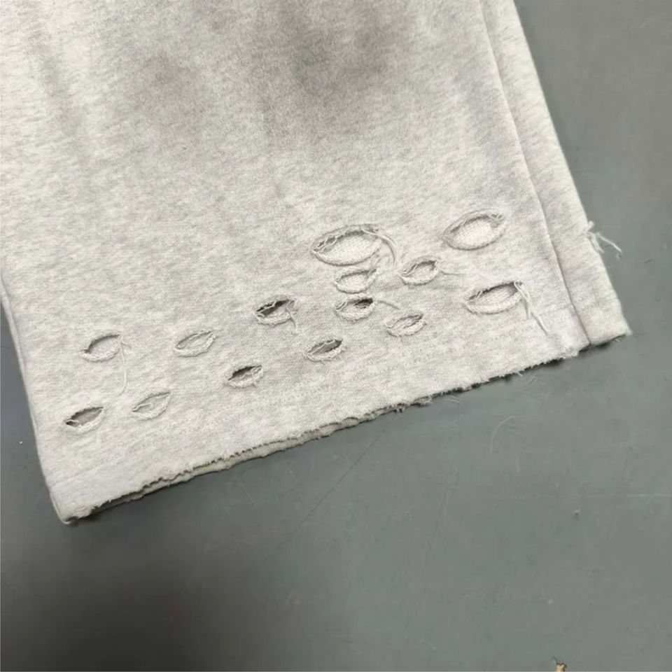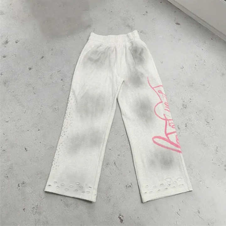 High Quality Streetwear French Terry Cotton Stacked Vintage Acid Wash Rhinestone Baggy Wide Leg Distressed Jogger Sweatpants