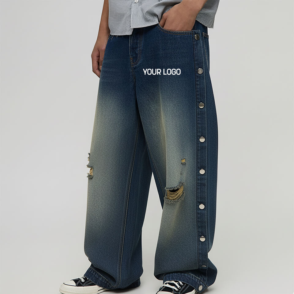 High Quality Streetwear Hip Hop Style Long Front Casual Winter Vintage Breathable Lightweight Denim Jacket Side Button Panels